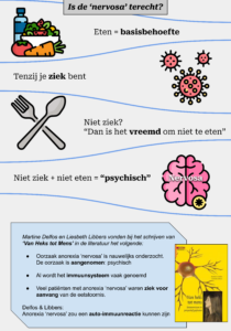 Daarin staat een uitgebreid onderzoek naar de kennis over oorzaak en behandeling van anorexia. Sinds 1894 wordt gesproken over anorexia nervosa. Inmiddels is men wereldwijd in een patstelling terecht gekomen, waar goedbedoelende hulpverleners nauwelijks succesvol zijn. De betrokkenen zelf zijn vaak de wanhoop nabij en staan in grote getalen op de driejarige wachtlijst euthanasie. Het boek Van heks tot mens laat zien, gebaseerd op onderzoek van middeleeuwen tot nu, welke weg we kunnen inslaan voor een respectvolle en succesvolle benadering. Paul Stoffer maakte naar aanleiding van het boek een inzichtelijke infographic: